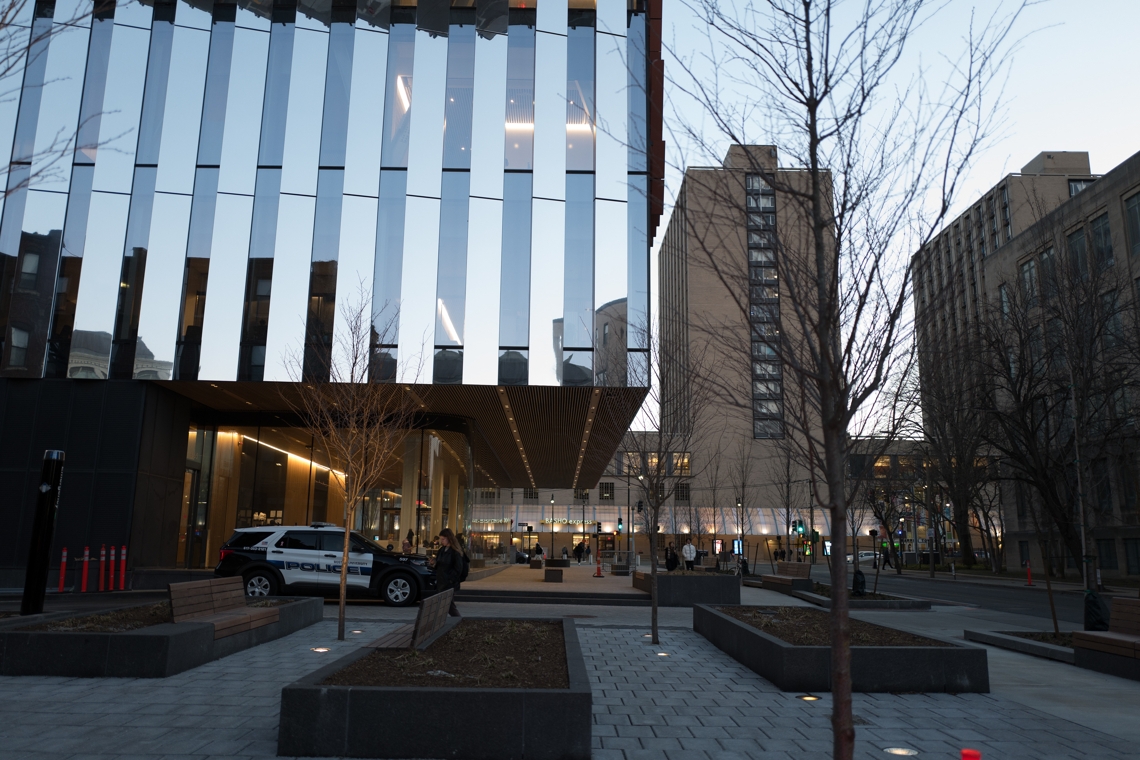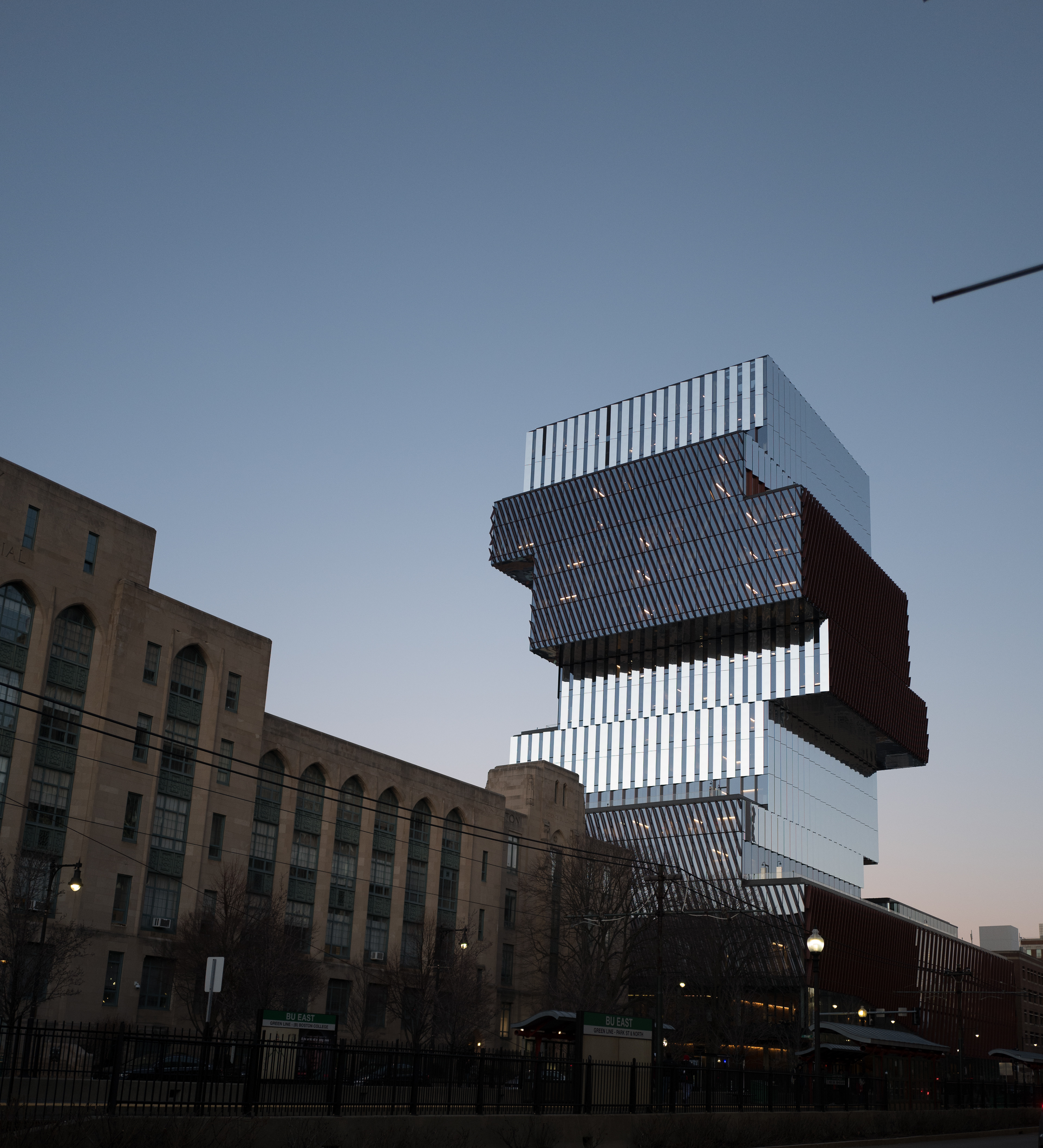 View of the new building, with Warren Towers in the background across Comm. Ave.