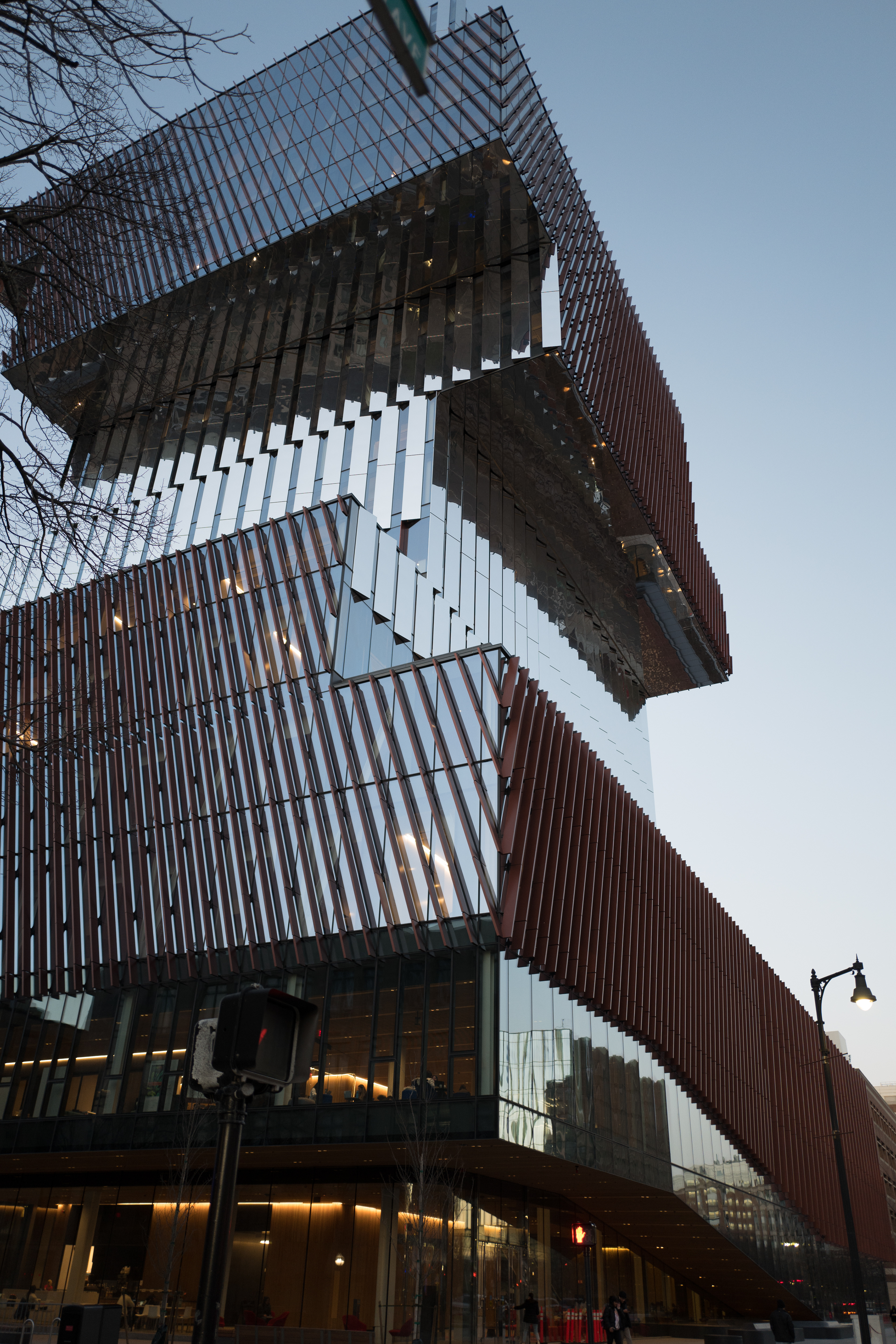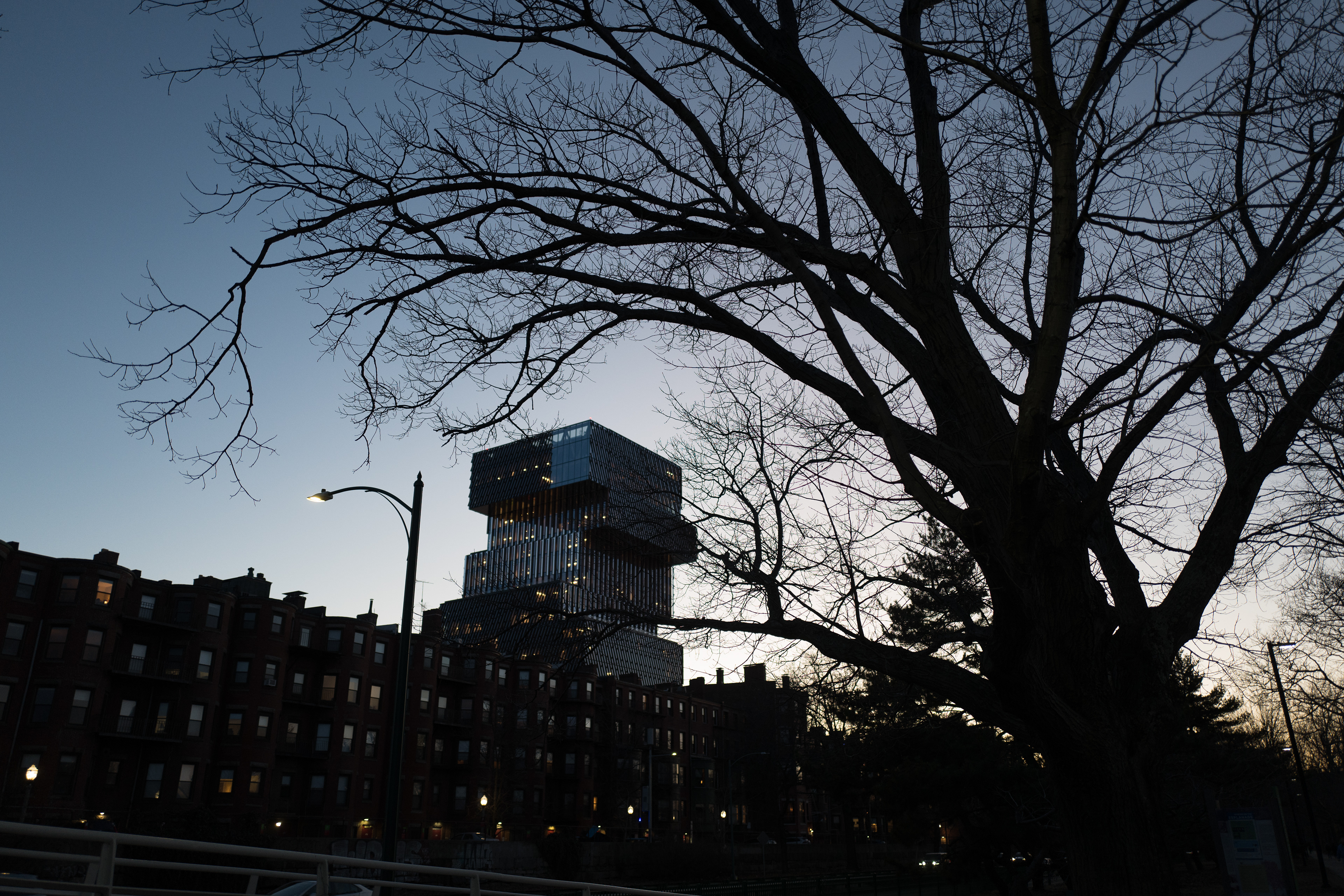 Saturday, 12 February 2023: I'd passed by the new Center for Computing and Data Sciences (I had to look up the name - it's colloquially referred to as the "Jenga Building") but hadn't had a chance to stop and look. This is a document of our walk at sunset to see it up close (and from the river).